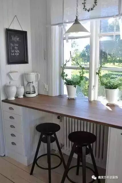 在窗戶邊安一個吧臺,在享受午飯的同時也欣賞到了窗外的美景,感覺溫暖的陽光灑落身上的感覺,只要家里有適合的窗邊,就可以選擇安一個小吧臺。