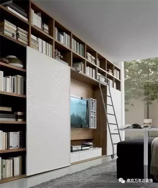 當然也可以學習外國人的創意,把電視機藏起來。放在書房里,用嵌入式面板遮起來。