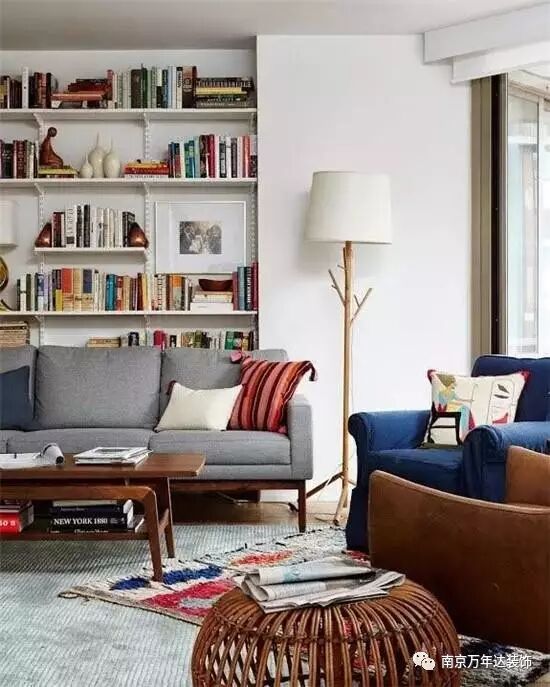 家里有電腦的年輕人,可以把裝電視墻的一面用來做儲物架,或者是書柜,能讓你的客廳更酷炫。