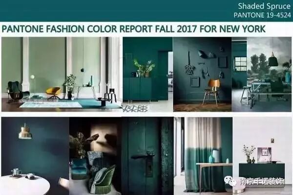 除了年度流行色草木綠以外,暗云杉綠就是紐約時裝周的十大流行色彩之一。暗云杉綠 (Shaded Spruce)出自森林的綠色,濃郁的色調自然而平和卻氤氳著磅礴的生機,就像常青樹一般地給人以遮蔽和保護感。這種顏色相對于草木綠來說,更為沉穩低調,富含一種與深青色相似的古典氣息,應用在家居設計中,可以通過配搭中性色來創建典雅時尚的家居氛圍。