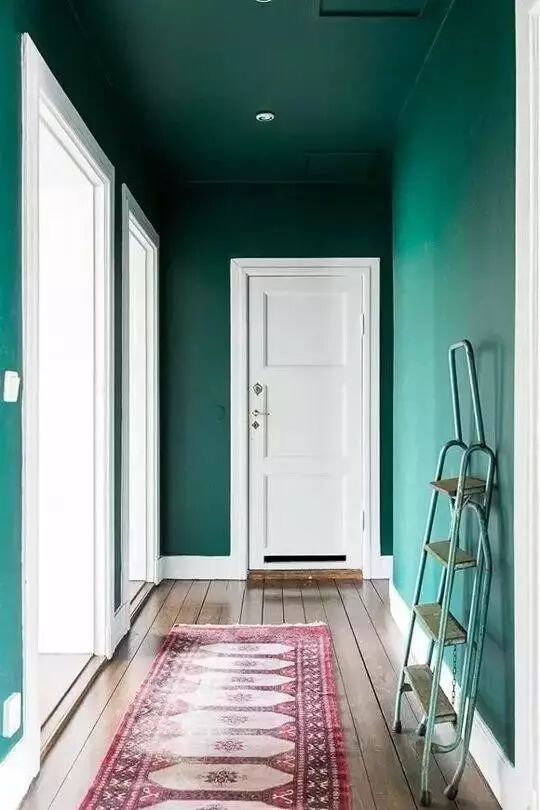 朝西的屋子日光直射時間長還特別熱,通常會把被光線直射的那面墻漆成冷色相的深色,既能吸光,視覺上也顯得清涼。